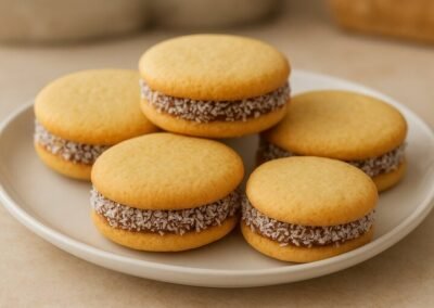 A South American classic, our alfajores are delicate cookies filled with creamy dulce de leche and lightly coated in powdered sugar. Soft, sweet, and melt-in-your-mouth, they’re the perfect indulgence for any time of day.